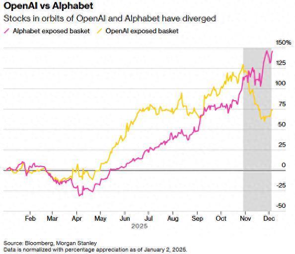 一个与OpenAI说合的公司组合在2025年上升了74%,固然发扬不俗,但远逊于与Alphabet说合股票146%的涨幅。科技股密集的纳斯达克100指数上升了22%。
